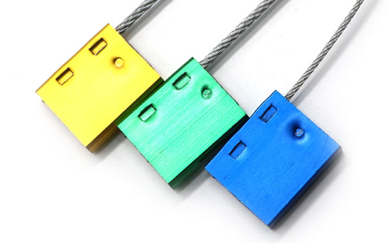 除了塑料外殼多見的就是鋁合金外殼,鋁合金鋼絲封條外部包裹鋁合金外殼,也是較為常見的一款鋼絲封條產品,常被使用于集裝箱周轉車與廂式貨車施封。它的外殼采用鋁制材料,氧化噴涂后顏色鮮明。使用鋁合金制材質在于能夠有著較好的硬度,可以經受得住長時間運輸途中的碰撞。而且鋁合金鋼絲封條 所使用的鋼絲是直徑較粗的 航空鋼絲繩 ,抗拉強度強。