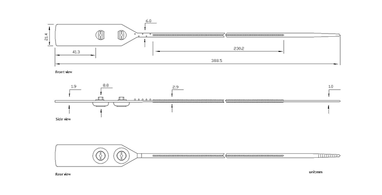 塑料封條采用PP材料制成,具有耐酸、耐蝕和絕緣性,不易老化、承受力強。